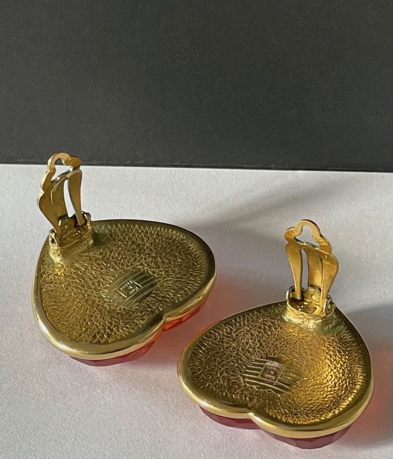 YVES SAINT LAURENT YSL Large Heart Orange Gold Vintage Earrings C.1980s