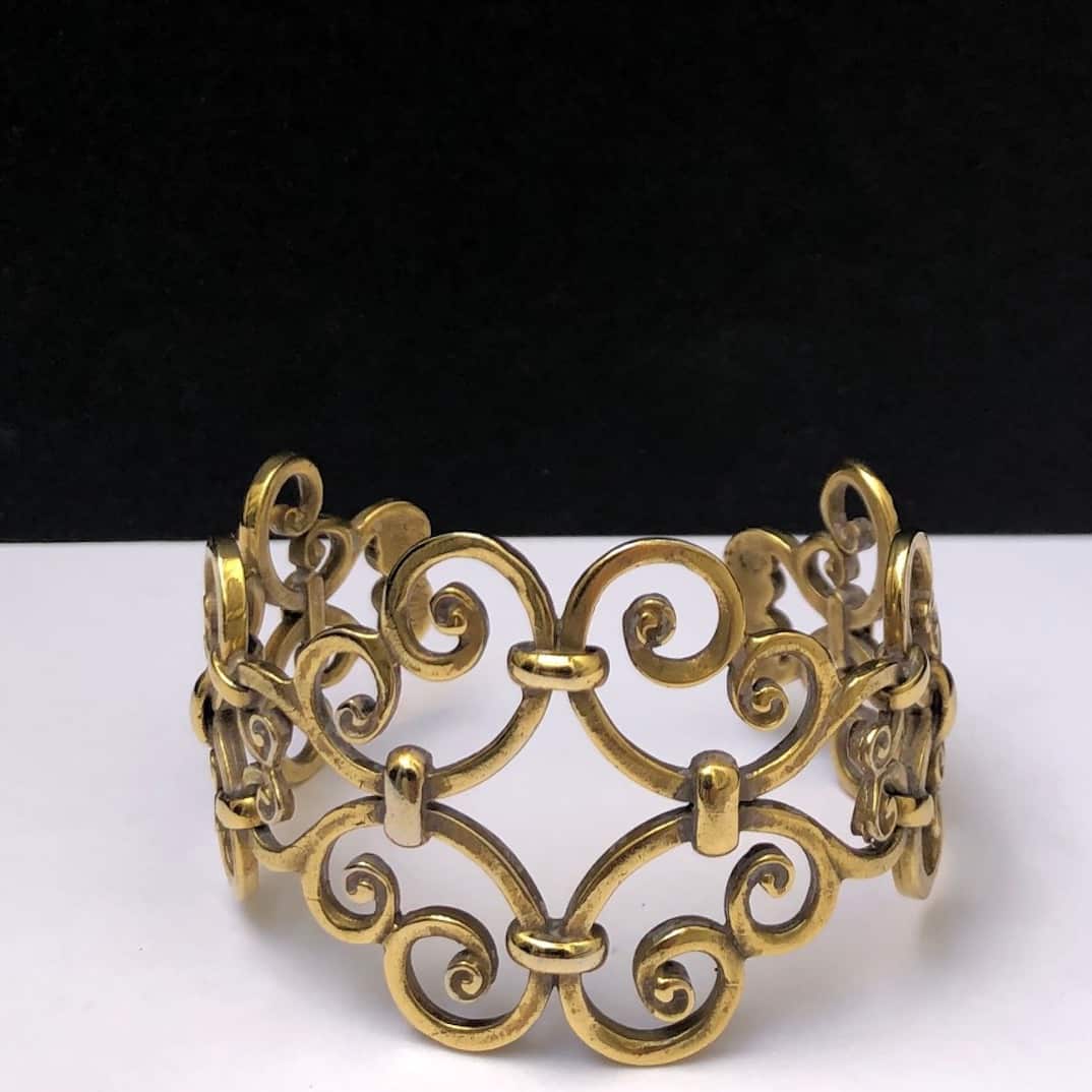 Yves Saint-Laurent YSL Vintage Gold Toned Wire Arabesque Cuff Bracelet 1970s