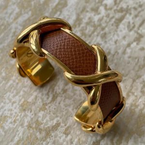 HERMÈS Gold and Leather Criss Cross Cuff Bracelet