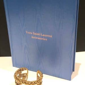 YVES SAINT-LAURENT Vintage 18K Gold Tone Cuff Bracelet Oval Crystals Circa 1980s