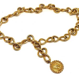 CHANEL VINTAGE Logo Medallion Large Link Belt