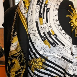 HERMES Dies et Hore Astrologie Silk Scarf Black-Gold