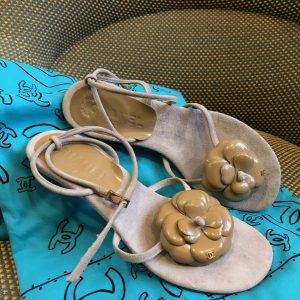 CHANEL Pale Pink Leather Slings Classic CC Logo Bow Heels Shoes Mules