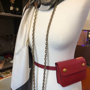 Hermès Red Leather Travel Clutch Fanny Pack Waist Belt Bag