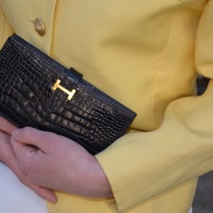 HERMES Bearn H Wallet Black Alligator Crocodile Constance Buckle