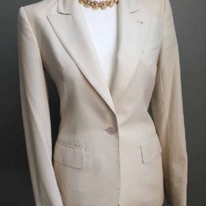 YVES SAINT-LAURENT Suit Jacket Trousers Cream Peak Lapel Vintage Circa 1990