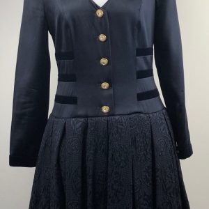 • LOUIS FERAUD Couture Black Silk Damask Dress Jewell Buttons
