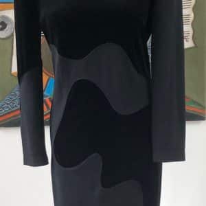 • LOUIS FERAUD Vintage Fitted Dress Black Velvet Wool 1980s