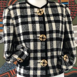 • LOUIS FERAUD Vintage Jacket Jewel Buttons Black & White Check 80s