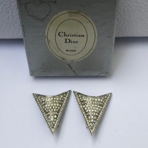 CHRISTIAN DIOR Vintage Arrow Crystal Art Deco Clip-On Earrings 1980s