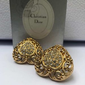 CHRISTIAN DIOR Vintage Heart Crystal Gold Tone Clip-On Earrings 1980s