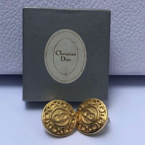 CHRISTIAN DIOR Vintage Small Round CD Monogram Gold Tone Clip-On Earrings 1980s