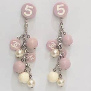 CHANEL Drop Earrings No.5 & CC Logo Pearls Pastille 2005 Cruise Croisière Collection Lilac