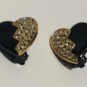 YVES SAINT-LAURENT Vintage Enamel Crystal Heart Clip-On Earrings