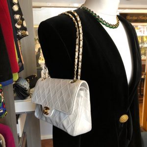 CHANEL Vintage White Single Flap Timeless RARE 24K Shoulder Bag Lambskin 1986